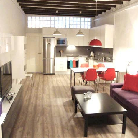 Carmen 28 1: The loft of the street Carme 28 1 º, has 120 meters, it is fully renovated to new, design. It is fully equipped. It has 2 large double rooms, air conditioning, Internet, laundry. It is a huge space with completely separate rooms at opposite ends. It is a first floor, the property has no lift. The price is 1250 € per month + consumption of electricity, Internet and water. 120 € Final cleaning + 2 cleanings per month of 20 € each. Deposit 2 months.